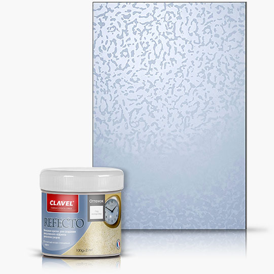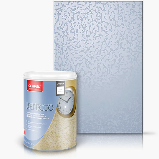 Двухкомпонентное декоративное покрытие на акриловой основе, включающее глянцевую базу и матовый финиш, что позволяет добиться эффекта морской пены с рисунком отблеском, заметным только при определенном освещении и угле обзора. К преимуществам Refecto можно отнести легкость его нанесения, прочность и антистатические свойства.